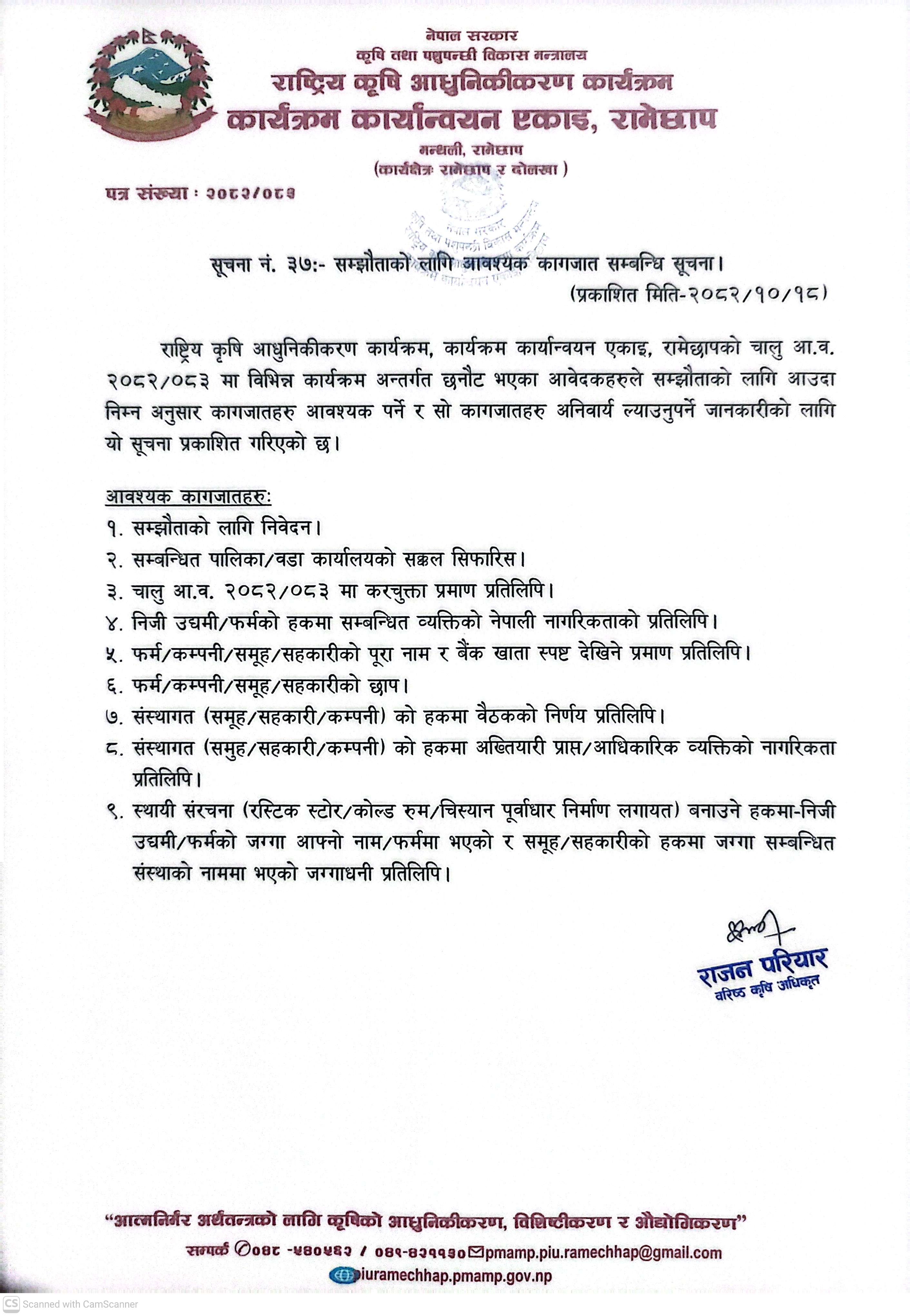 सूचना नं ३७: सम्झौताको लागि आवश्यक कागजात सम्बन्धि सूचना 2082-10-18 Closed !!!