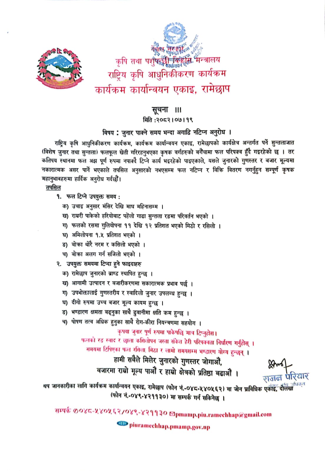 सूचना नं १०:- जुनार पाक्ने समय भन्दा अगाडि टिप्न अनुरोध ।
