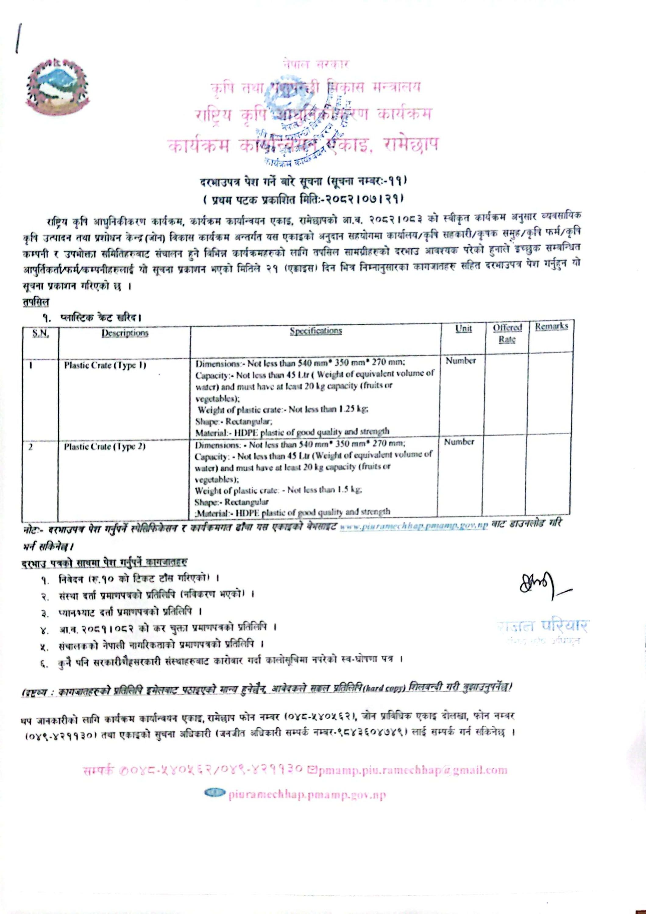 सुचना नं 8:- कृषि तथा पशुपन्छी उद्यमशिलता विकास कार्यक्रम सञ्चालनका लागि प्रस्ताव सम्बन्धी सूचना ।
