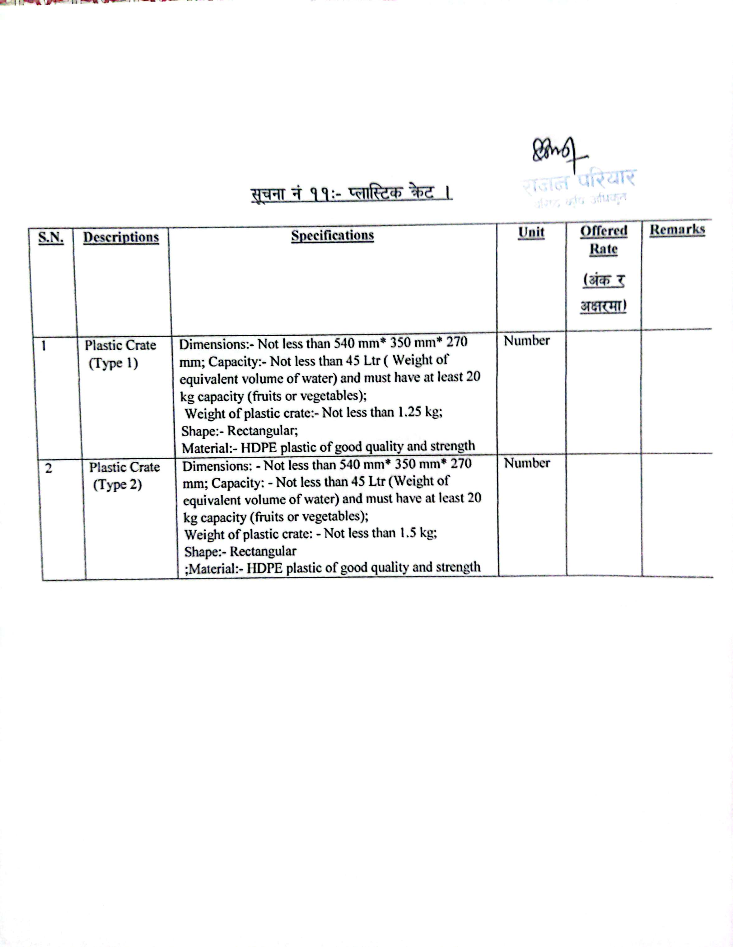 दरभाउपत्र पेश गर्ने फारम (प्लास्टिक क्रेट)